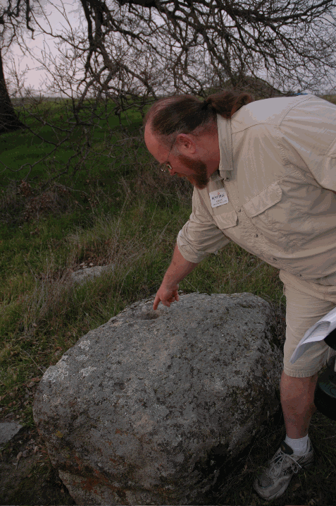 Thank you Chuck Kritzon for speaking to 30 plus people at the Maidu Interpretive Center on California rock art and native California tool technology. In addition to a review of rock art in the area Chuck showed the basic mineral pigments used in the creation of rock art and discussed how they were processed and stored. After the presentation Chuck lead a tour of the petroglyphs at the Center. At dusk shadows highlight the figures. If you haven’t visited the Maidu Interpretive Center (916 774-5934), add it to your list of excursions.